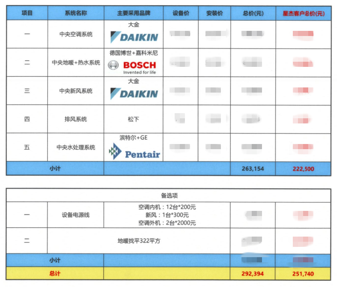 家居集成系統(tǒng):大金VRV-P中央空調(diào)系統(tǒng) 大金新風(fēng)系統(tǒng) 松下排風(fēng)扇 博世歐洲之星鍋爐 嘉科米尼地暖管路系統(tǒng) 濱特爾中央水處理 威樂循環(huán)泵