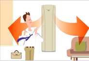 R410A冷媒具有制熱性能優越,無毒且不破壞臭氧層等特點。大金新冷媒柜機能迅速制熱,最大制熱能力10.5W,可對應40m 大面積房間的制熱需求。