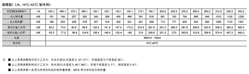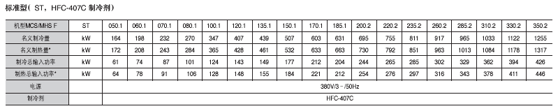 制冷劑:HCFC-22 HFC-407C