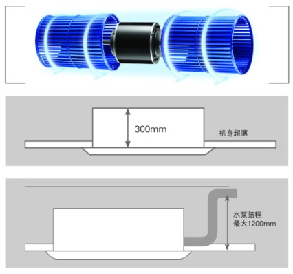 機(jī)身纖薄,可減少房間的吊頂空間,安裝不受層高限制,更可靈活搭配房間裝