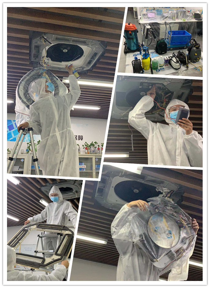 新型冠狀病毒的主要傳播途徑是通過呼吸道飛沫傳播,當(dāng)帶病毒的飛沫附著在通風(fēng)系統(tǒng)內(nèi)的顆粒物中傳播開來,污染室內(nèi)空氣,就會(huì)大大提高室內(nèi)人員感染病毒的風(fēng)險(xiǎn),導(dǎo)致肺炎疫情加劇。因此對(duì)中央空調(diào)進(jìn)行有效的清洗、消毒迫在眉睫。