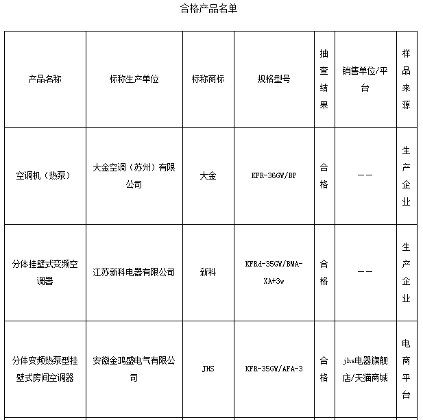 中國質(zhì)量新聞網(wǎng)訊 23日,江蘇省質(zhì)監(jiān)局公布家用空調(diào)器產(chǎn)品質(zhì)量抽查結(jié)果。本次共抽查產(chǎn)品39批次,合格36批次,總體狀況較好。其中,變頻空調(diào)器全部合格,3批次不合格產(chǎn)品來自電商平臺,抽查江蘇企業(yè)生產(chǎn)的4批次空調(diào)器均合格。抽查顯示,部分產(chǎn)品在制冷量、制冷消耗功率、熱泵制熱消耗功率和能效值等項(xiàng)目上存在問題。