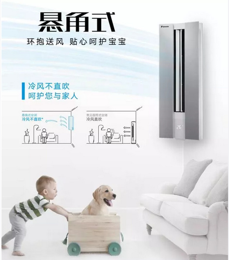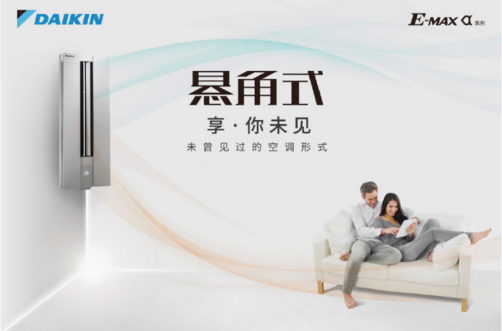 全新E-MAX α系列懸角式空調,革命性的懸角設計,可懸掛于客廳轉角,為客廳釋放出更多黃金空間。